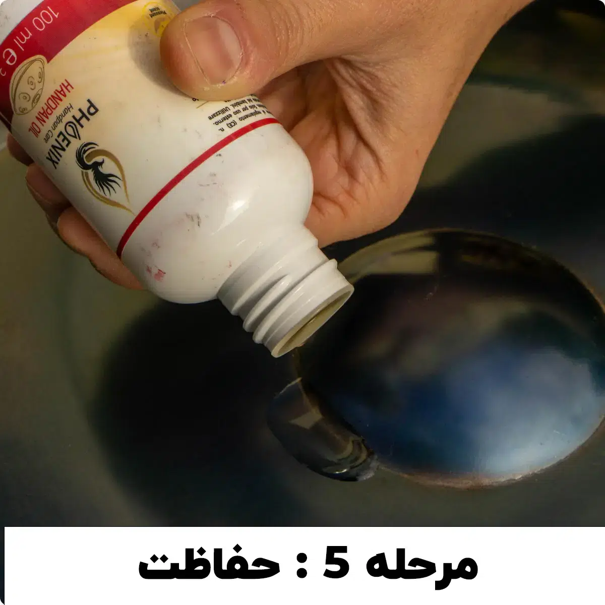 اگر از روغن استفاده کردید، هر اضافهریزی روغن را با دستمال نرم و خشک سوم پاک کنید.
