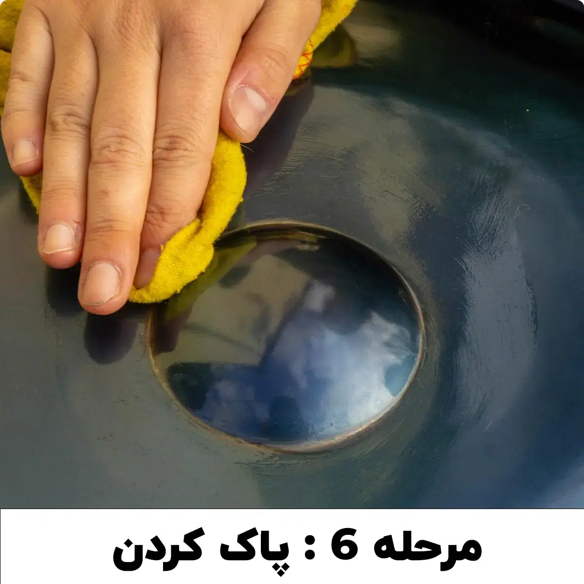 همانند قبل، هنگ درام خود را با یک دستمال میکروفایبر تمیز و خشک کنید. الکل اختیاری است – مقدار کافی را روی یک دستمال بریزید و با دقت تمام سطوح هنگ درام، لبه های خارجی و… را تمیز کنید.